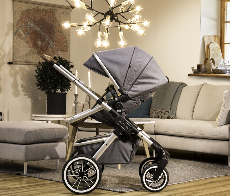 - Höjdjusterbara adaptorer - Liggdelen hamnar högre upp för ökad närhet och ögonkontakt med ditt barn, sittdelen hamnar lägre ner för bättre stabilitet och körglädje